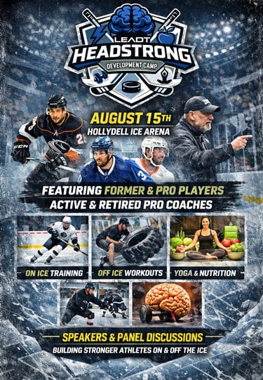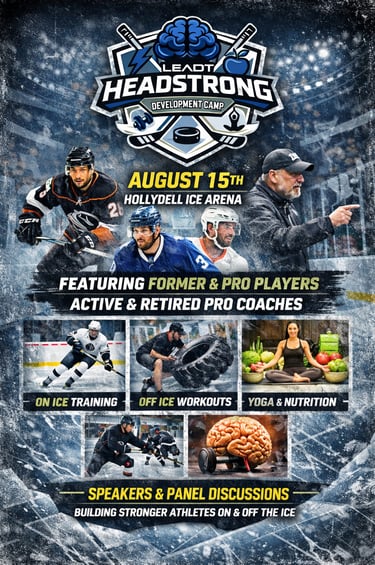 The Leadt HeadStrong Development Camp is a premier hockey development experience bringing together professional players, former pros, and elite coaches for an immersive day of training at Hollydell Ice Arena. Athletes will take part in high-level on-ice instruction, off-ice performance training, yoga and recovery sessions, nutrition education, and mental health discussions, creating a complete development environment that goes beyond traditional hockey camps.